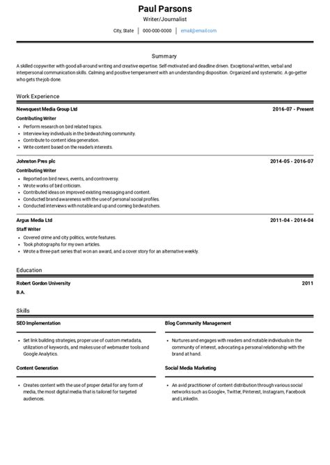 308 Journalism Cv Examples Entertainment And Media Cvs Livecareer
